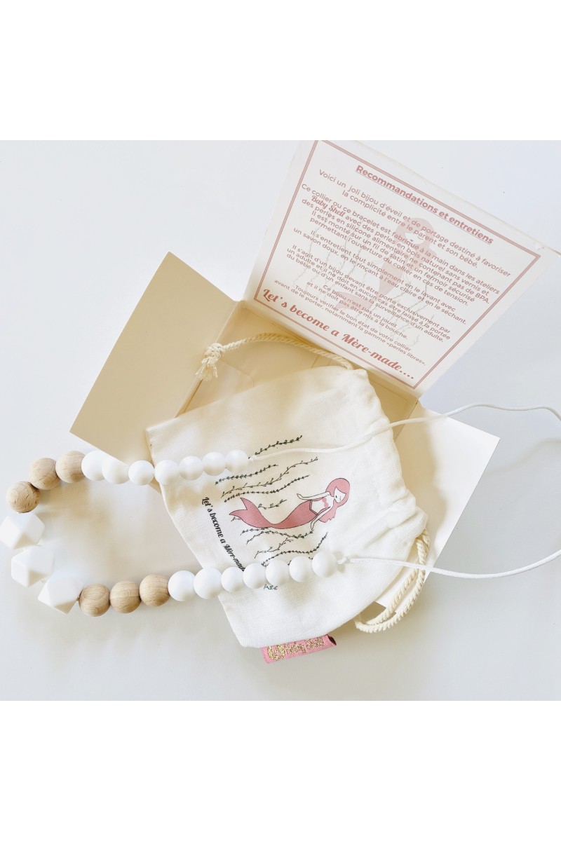 Fait à la main en France Tous nos colliers sont testés et conformes aux normes: EN 71-1 -2 et 3 Le collier d’éveil sert à...
