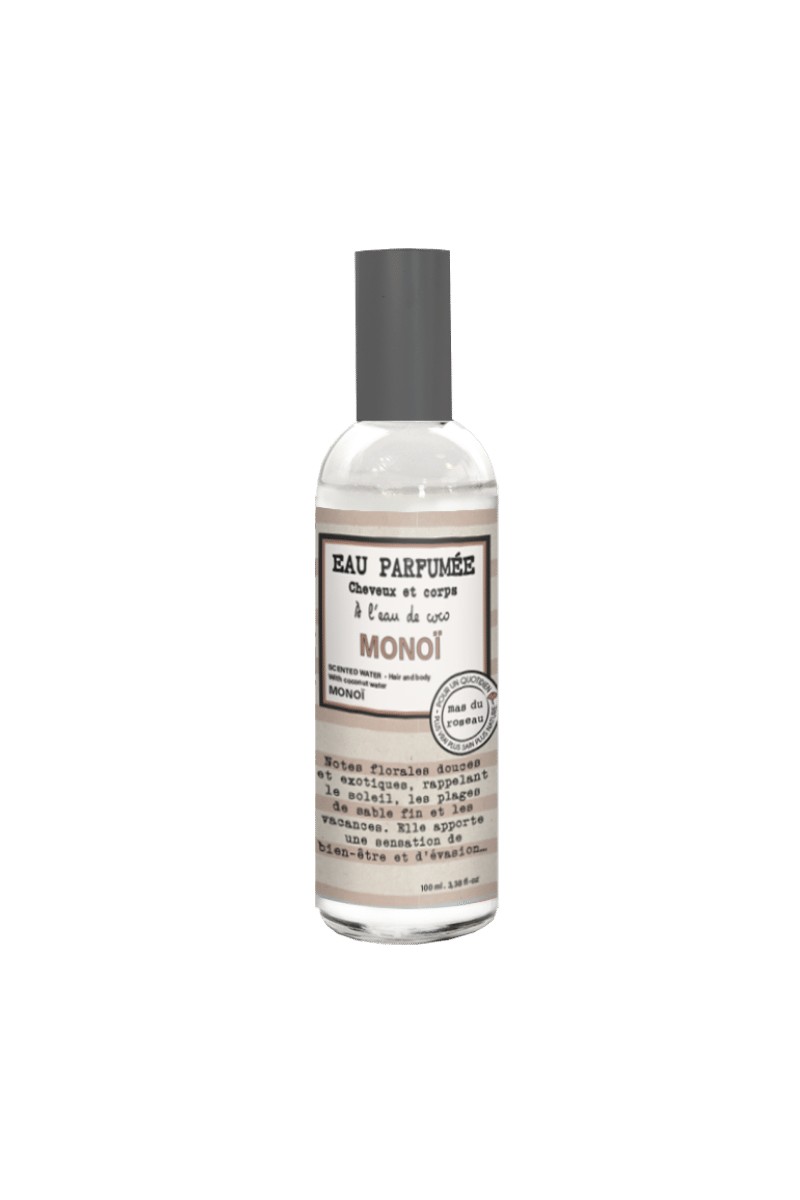 Eau parfumée Monoï : notes florales douces et exotiques, rappelant le soleil, les plages de sable fin. Elle apporte une sensation de bien-être et d’évasion.
