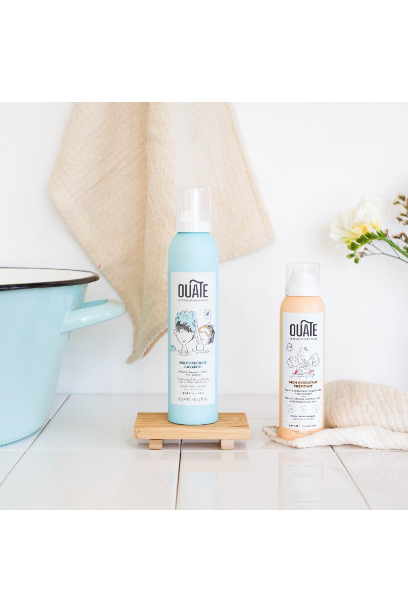 La Chantilly Lavante OUATE est un soin 3-en-1 qui nettoie délicatement le visage, le corps et les cheveux.